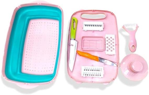 - Includes a pointed holder for holding vegetables and fruits while cutting, preventing hand injuries.